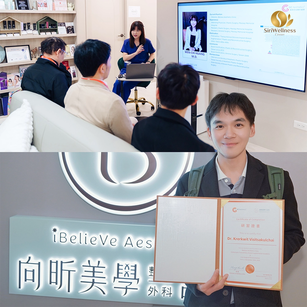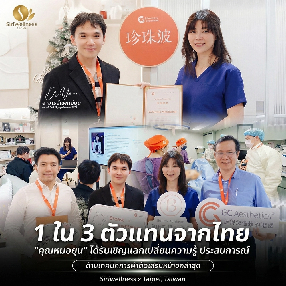 วงการศัลยกรรมความงามไทยขยับอีกขั้น เมื่อ คุณหมอยุน ศัลยแพทย์ตกแต่งเฉพาะทางจาก Siriwellness ได้รับเกียรติให้เป็น 1 ใน 3 ตัวแทนศัลยแพทย์จากประเทศไทย เข้าร่วมงานประชุมและแลกเปลี่ยนองค์ความรู้ด้านการผ่าตัดเสริมหน้าอกระดับนานาชาติที่ IBelieve Aesthetic ณ กรุงไทเป ประเทศไต้หวัน ซึ่งเป็นเวทีที่รวมผู้เชี่ยวชาญด้านศัลยกรรมทรวงอกจากหลายประเทศ เพื่ออัปเดตเทคนิคใหม่และมาตรฐานด้านความปลอดภัยล่าสุด
