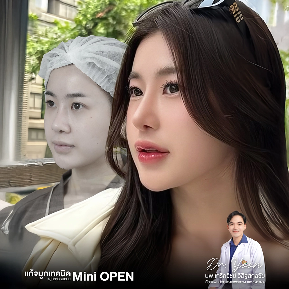 เคสนี้เป็นแก้ลูกสาวหมอยุน มีปัญหา ปลายจมูกใหญ่ ปีกจมูกกว้าง  จมูกมีความเบี้ยวเอีง แก้จมูกด้วยเทคนิค Mini open จมูกปรับจมูกให้ทรงสวย ปลายจมูกหวานละมุน