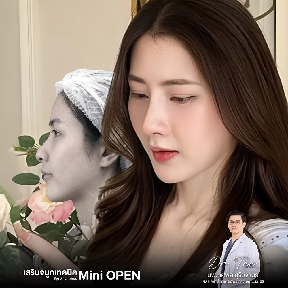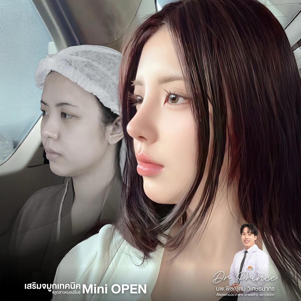 เคสเสริมใหม่ ลูกสาวหมอปริ๊นซ์ มีปัญหาจมูกสั้น ขาดมิติ ถ่ายรูปไม่ขึ้น เสริมจมูกใหม่ด้วยเทคนิค mini open จมูกปลายพุ่ง กวานละมุน มีมิติ ถ่ายรูปสวยทุกมุม