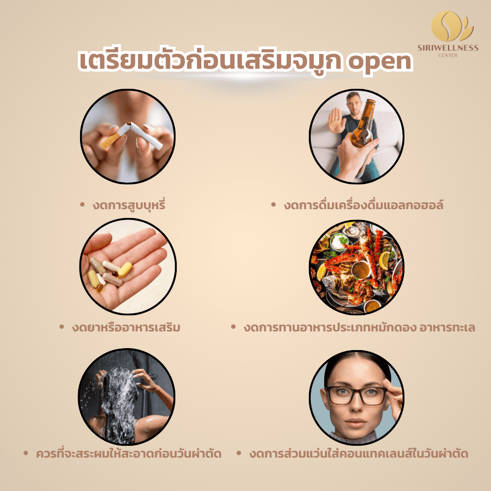 • การผ่าตัดเทคนิคโอเพ่น เป็นการผ่าตัดที่ยากและมีความซับซ้อน ควรเลือกคลินิกที่มีความน่าเชื่อถือ สะอาดถูกหลักอนามัย มีแพทย์ที่มีความถนัดเฉพาะทางและมีประสบการณ์