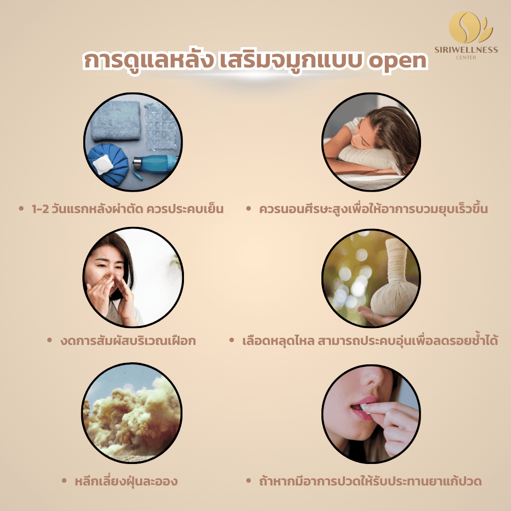 การดูแลหลัง เสริมจมูกแบบโอเพ่น