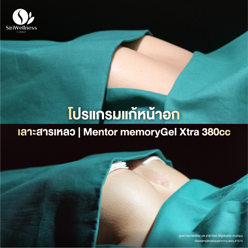 แต่หากเนื้อเต้านมยังแข็งแรงดี และสามารถทำการเสริมได้ในคราวเดียว แพทย์อาจเลือกทำ เลาะสาร + เสริมซิลิโคนใหม่ทันที (One Stage Surgery) โดยใช้ซิลิโคนเกรดพรีเมียม เช่น Motiva, Mentor ที่มีผิวสัมผัสนุ่มและปลอดภัยต่อเนื้อเยื่อ