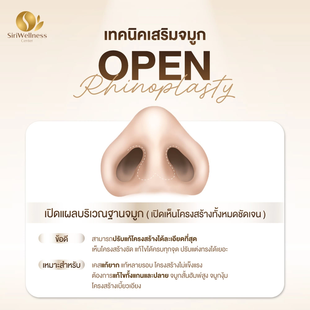 เทคนิค Open เหมาะอย่างยิ่งสำหรับผู้ที่ต้องการ “ปรับโครงสร้างจมูกใหม่ทั้งหมด” ไม่ว่าจะเพื่อความสวยงามหรือการแก้ปัญหาจมูกผิดรูป