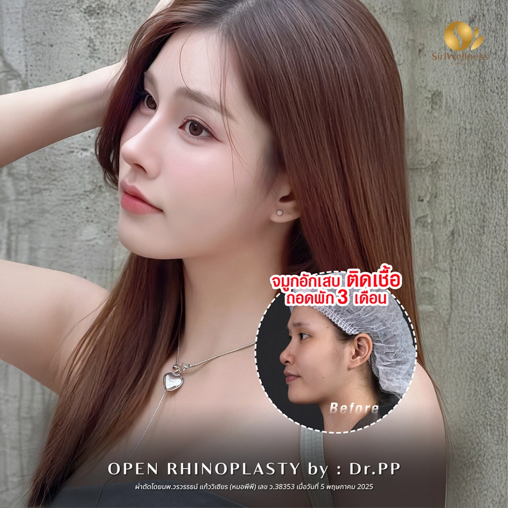 หลังจากจมูกฟื้นตัวเต็มที่ คุณหมอพีพีจึงเข้าทำการแก้ไขด้วยเทคนิค Open เพื่อเปิดเห็นโครงสร้างทั้งหมดอย่างละเอียด แก้ปัญหาโครงสร้างเดิมที่เคยล้ม เสริมฐานให้แข็งแรง และออกแบบทรงใหม่ให้รับกับรูปหน้า เน้นความ โด่งสโลปพอดี ปลายพุ่งนุ่มละมุน ดูสวยมีมิติและเป็นธรรมชาติมากขึ้น