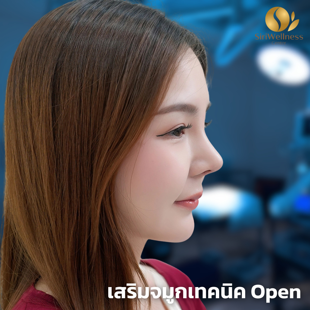 การเสริมจมูกแบบโอเพ่น (Open Rhinoplasty) คือการผ่าตัดเสริมจมูกแบบเปิด โดยแพทย์จะทำการผ่าตัดเปิดโครงสร้างภายในของจมูก การผ่าตัดในลักษณะนี้จะช่วยให้แพทย์เห็นโครงสร้างภายในจมูกได้อย่างชัดเจน เช่น กระดูกจมูก ผนังกั้นโพรงจมูก กระดูกอ่อนจมูก เป็นต้น โดยหลังจากนั้นจะสามารถปรับโครงสร้างของจมูกได้อย่างละเอียด เทคนิคนี้จะได้รับความนิยมเป็นอย่างสูงในปัจจุบัน