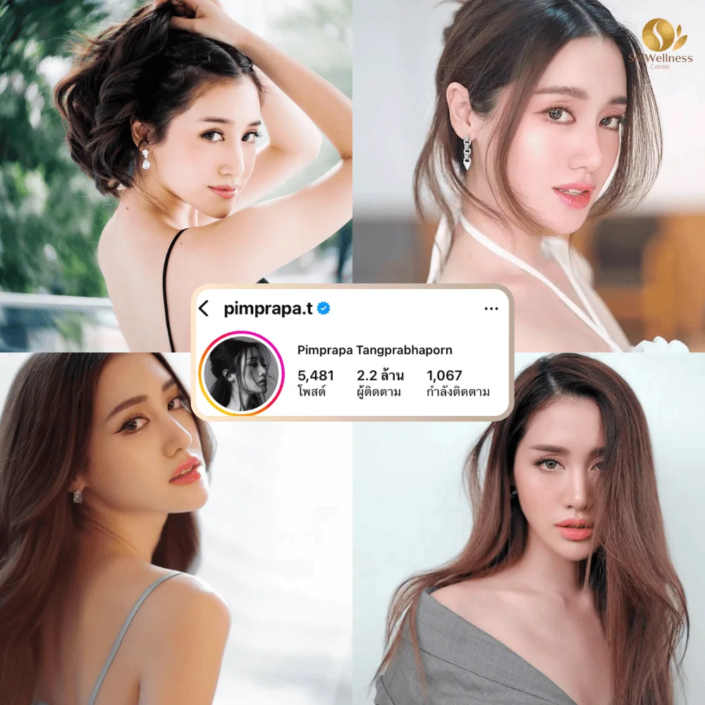 คุณพิมฐา อินฟลูเอนเซอร์ชื่อดังมีผู้ติดตามใน IG ถึง 5 ล้านคน มีทรงจมูกที่สวยเป็นธรรมชาติ มีสันจมูกที่ไม่สูงมาก มีความสโลปที่ไล่ระดับ มีปลายที่อ้วนกลม โดยรวมออกมาหวานละมุน