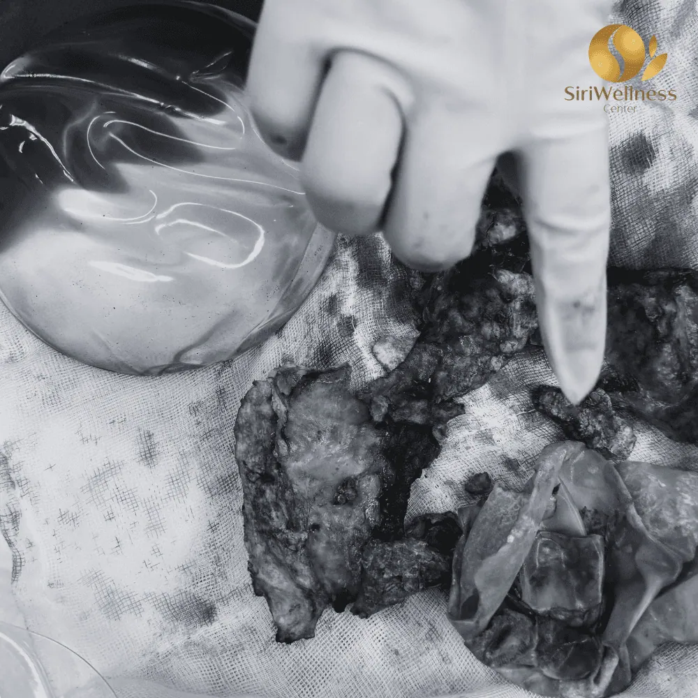 - ผ่าตัดนำซิลิโคนออก โดยจะเป็นการผ่าตัดนำซิลิโคนเก่าออกมา ล้างเนื้อเยื่อและโพรงให้สะอาด หลังจากนั้นจะขูดพังผืดบริเวณซิลิโคนเก่าออก