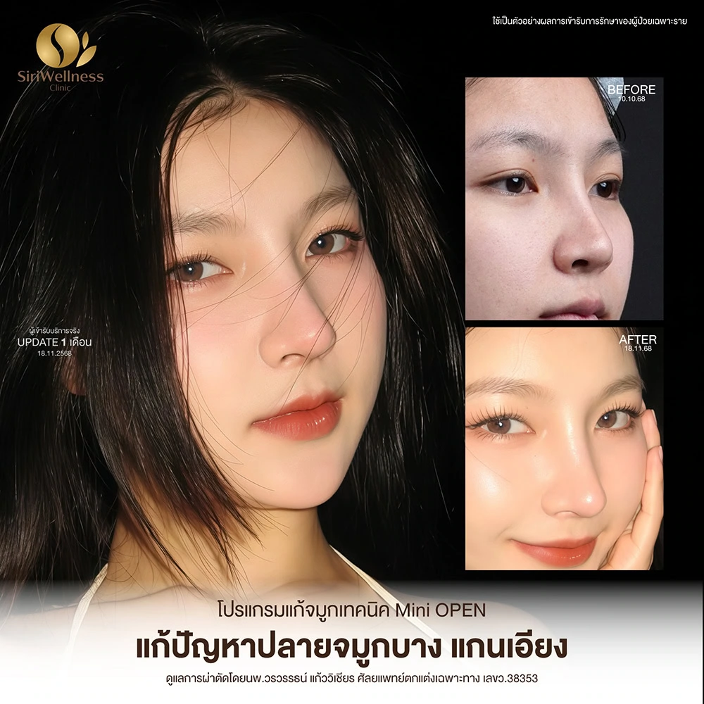 การปรับทรงจมูกไม่ใช่เพียงการปรับเปลี่ยนรูปทรงภายนอก แต่เป็นการดูแลและปรับทรงจมูกให้เหมาะสมกับสภาพเนื้อและโครงสร้างเดิมของแต่ละบุคคล ซึ่งเป็นแนวคิดหลักในการดูแลเคสปรับทรงจมูกของคุณหมอพีพี ที่ Siriwellness