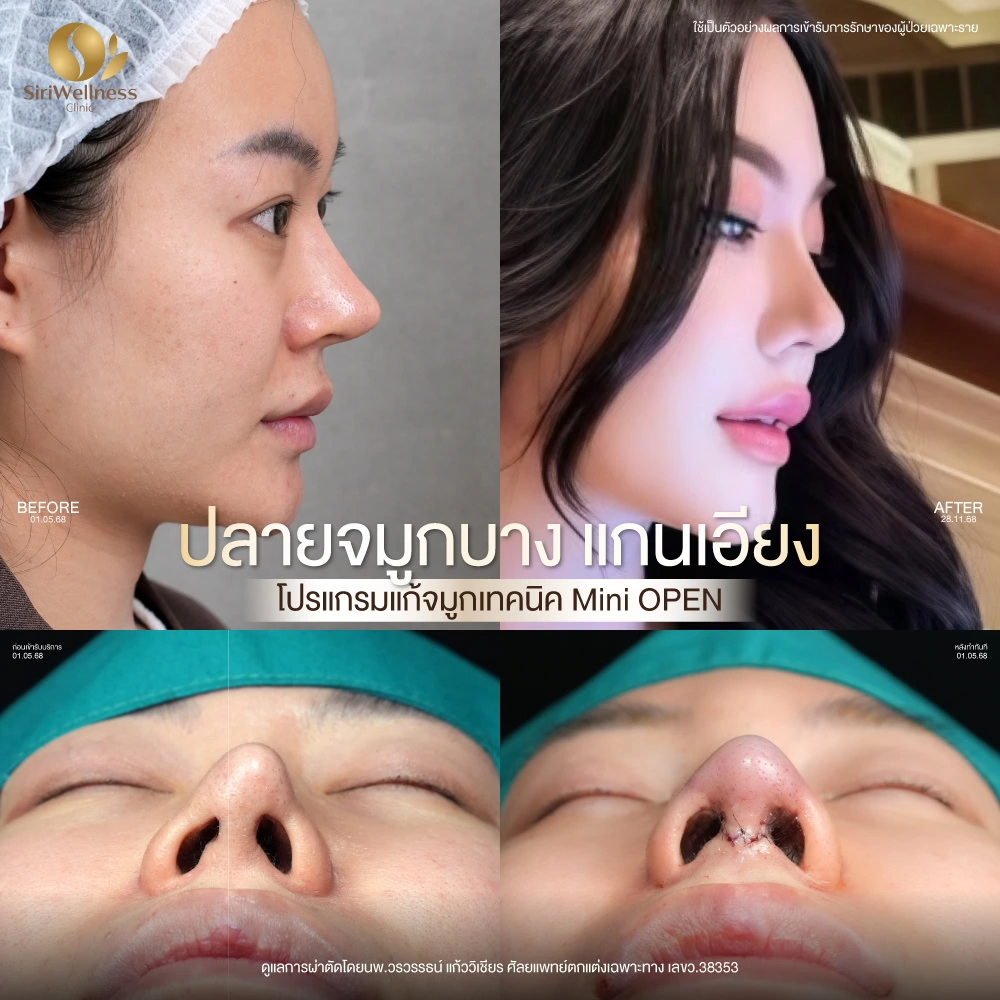 ที่ Siriwellness ผู้เข้ารับบริการจำนวนมากเป็นผู้ที่เคยผ่านการผ่าตัดจมูกมาก่อน และต้องการเข้ามารับการประเมินเพื่อวางแผนการปรับทรงจมูกให้เหมาะสมกับสภาพเนื้อและโครงสร้างจริงของแต่ละบุคคล เช่น